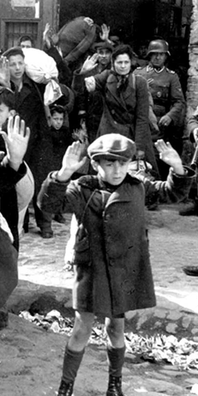 Varşova Gettosu’nda açlıktan ölmüş bir bebek ve babası. Getto sokaklarında yemek dilenen ve uyumaya çalışan çocuklar. “Terörist” oldukları iddiası ile idama götürülen Yahudiler. Varşova Gettosu’nda “Polonya’nın doğusuna yerleştirilecekleri” söylenerek gaz odalarına götürülen bir grup Yahudi. Almanlar, Varşova’da taş üstünde taş bırakmamak için tahribatın her çeşidini yapmışlardı. Getto’daki Yahudi polislerin kendi halklarına bazen Almanlar’ı aratacak kadar sert davrandıkları olurdu.- 1