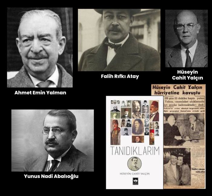 İkdam gazetesinin sahibi ve başyazarı Ahmet Cevdet, Tanin başyazarı Hüseyin Cahit, İleri’den Celal Nuri, Akşam başyazarı Necmettin Sadak, Vakit başyazarı Mehmet Asım, Vatan başyazarı Ahmet Emin vs…