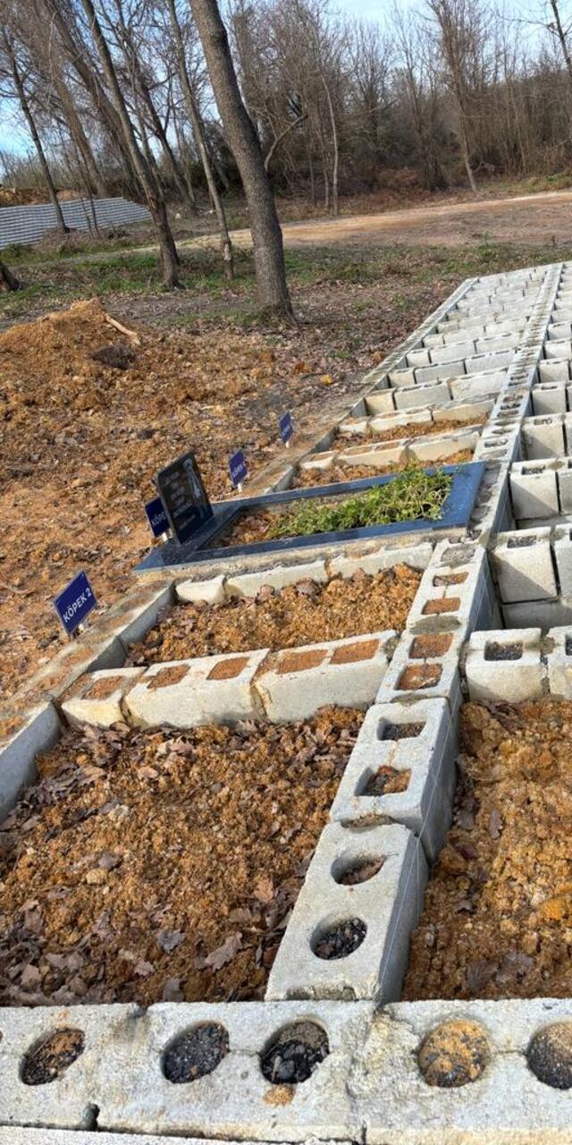 Yeni bir uygulamaymış. İsteyen vatandaş belli bir ücret karşılığı ölen hayvanını buraya defnedebiliyor, isterse mezar taşı da yaptırabiliyor. Şu anda 35’er kedi ve köpek mezarı kazmışlar.