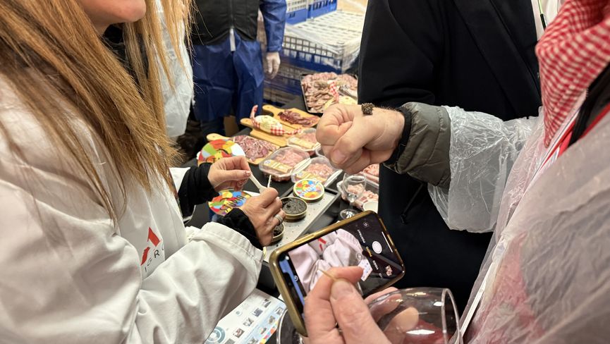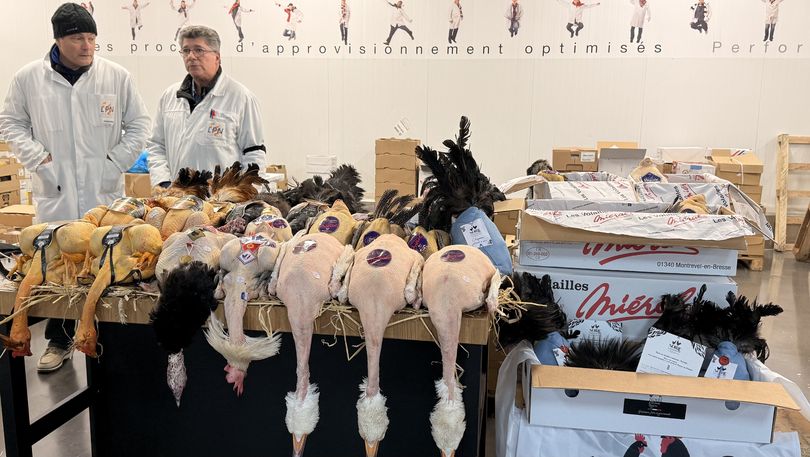 Fransa’da artan Müslüman nüfusunun talebini karşılamak için helal et satan bir hindi üreticisinin önünde duruyoruz. Hindi ve tavuk karışımı sosis, hafifçe ızgara edilmiş hindi jambon, hindi bacon tadıyoruz. Olağanüstü.