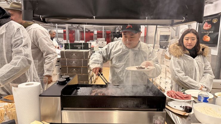 O ızgarada birazdan Japonya’dan Fransa’ya ithal edilen Wagyu etleri pişirilecek. FoodHub isimli toptancı dünyanın pek çok yerinden ürünü Fransa’ya getiriyor. Neredeyse bir imkansızı başarmışlar, yakında taze wasabi kökü de getirecekler; anlaşmalar yapılmış. Ama bugün ithal ettikleri Japon ürünleri—pilav, susam, yuzu sirkesi, acı soslar—dışında herkesin gözü o bol mermerli Wagyu’da. Bu etin farklı türleri var ve A5 etiketi taşıyanı en makbul olanı; en yağlı, en mermerli, en ağızda dağılanı. Çok çok az pişirmek yetiyor.