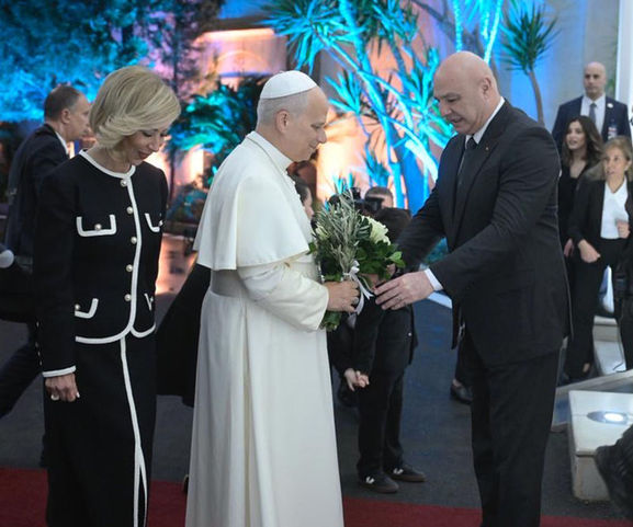 Vatikan Devlet Başkanı 14. Leo ise konuşmasında, "Sizlerle buluşmak ve barışın 'bir kelimden fazla olduğu' bu toprakları ziyaret etmek benim için büyük bir sevinçtir." dedi.