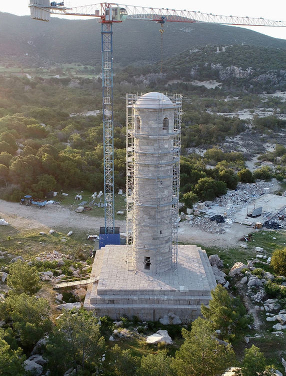 37 yıl önce Akdeniz Üniversitesi'nden Prof. Dr. Fahri Işık ve eşi Havva İşkan Işık tarafından başlatılan kazılarda çıkartılan yüzlerce tarihi eser arasında en önemlilerinden biri olan ve M.S. 64 yılında Roma İmparatoru Nero tarafından yaptırılan deniz feneri, yaklaşık yüzde 80'i kazılarda ortaya çıkartılan orijinal taşları, yapay zeka teknolojileri kullanılarak yıkılmadan önceki halindeki yerlerine konularak inşa edildi.
