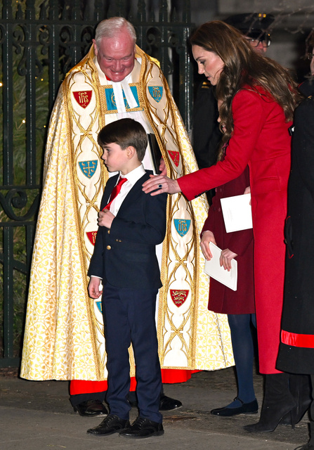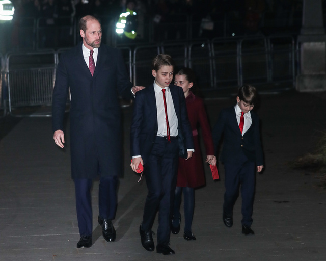 Kızı Prenses Charlotte, biraz daha koyu renkli bir ceketle törende hazır bulunurken oğulları, tıpkı Prens William gibi takım elbiselerini kırmızı kravatla tamamladı.
