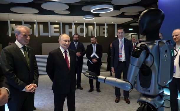 Kremlin Basın Merkezinin açıklamasına göre konferans bünyesinde düzenlenen sergide Putin'e Rus yapımı insansı robot tanıtıldı.