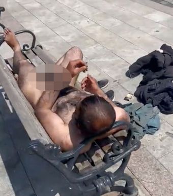 Yine bugün yayılan bir başka videoda sahildeki bankta çırılçıplak yatan bir erkek görülüyor. Bu görüntünün de aynı yer ve zamanda çekildiği tahmin ediliyor.