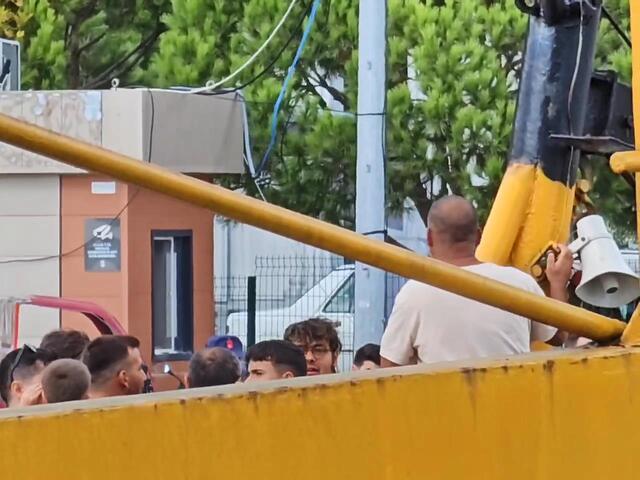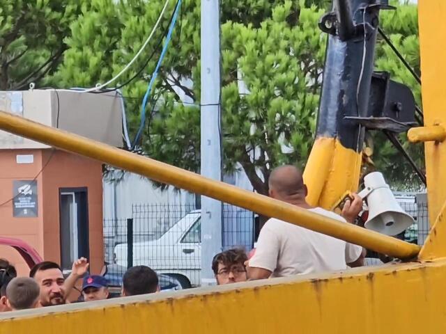 DHA'nın haberine göre Marmara Adası Limanı'nda bekletilen gemideki yolcular korna çalarak protestoda bulundu.