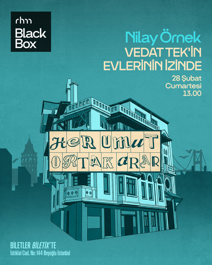 Gazeteci ve yazar Nilay Örnek ile İstanbul sokaklarında apartman dedektifliğine çıktığımız “Her Umut Ortak Arar” dizisinde, tarihi apartmanların izini sürmeye devam! 28 Şubat Cumartesi 13.00’te konuşmada, Birinci Ulusal Mimarlık Akımı’nın öncü isimlerinden Vedat Tek’in evleri konuşuluyor.