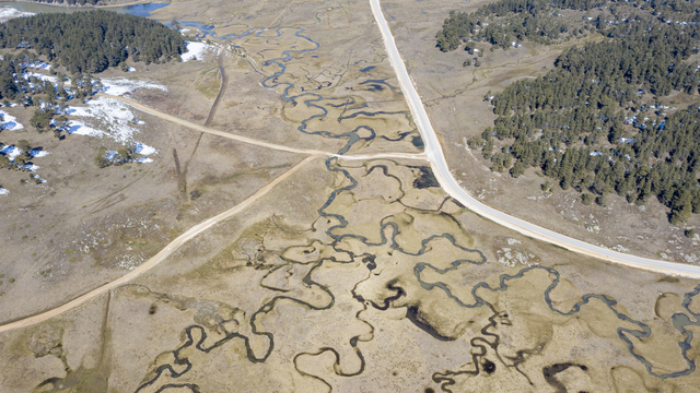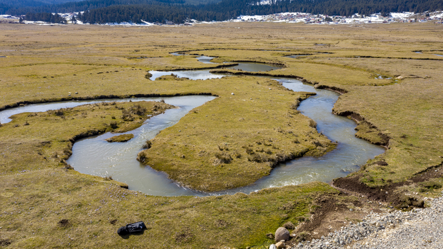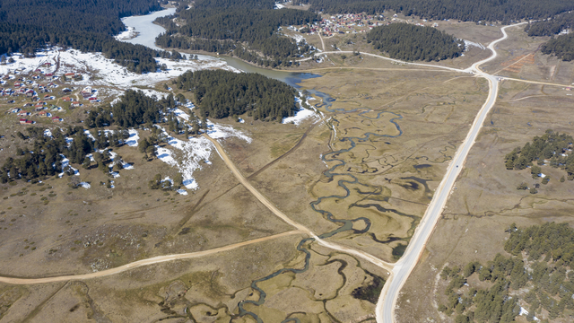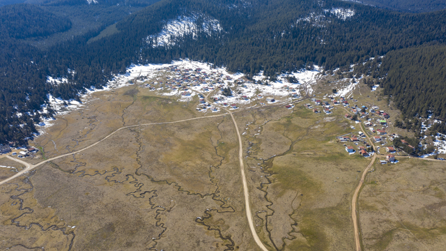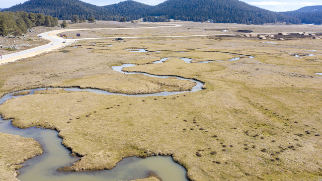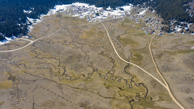 Doğal güzellikleriyle ünlü Bolu'da yer alan Sarıalan Yaylası'nda menderesler, karların erimesinin ardından suyla dolarak ayrı bir güzelliğe büründü