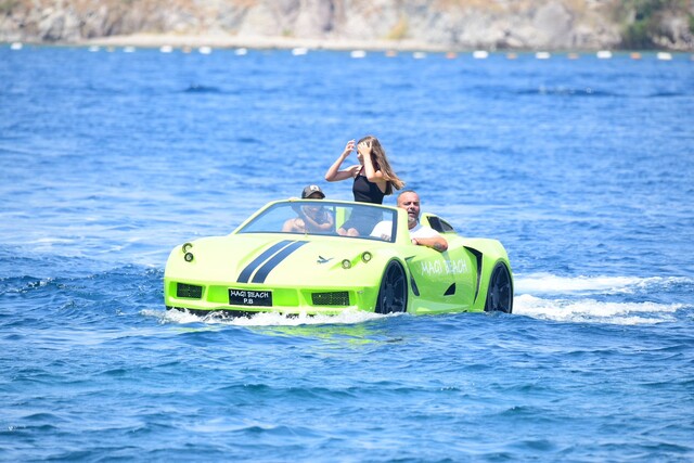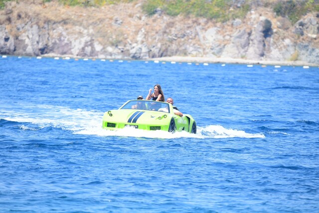Fenerbahçe'nin 'Genç Semih'i olarak tanınan Semih Şentürk, kızlarıyla birlikte deniz üzerinde yüksek hızlarda seyahat etmek için üretilen jetcar'ın sürücü koltuğunda görüntülendi.