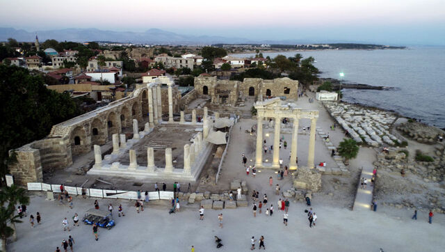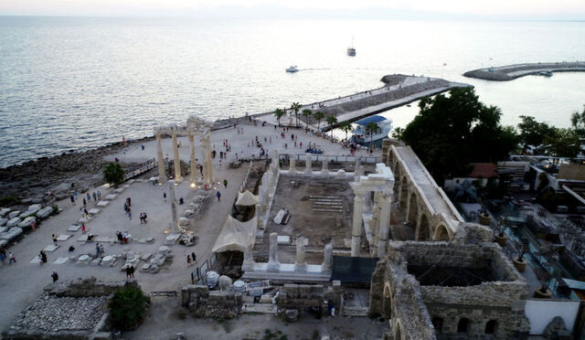 Türkiye turizminin sembol görsellerinden Side Apollon Tapınağı'nın yanındaki Athena Tapınağı'nın kazılarda ortaya çıkarılan tarihi sütunlarından 20'sinden kalan parçalar, geçen sene başlatılan restorasyonla yüzyıllar sonra ayağa kaldırıldı