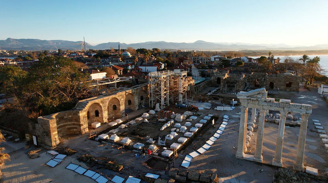 Milattan Önce 7'nci yüzyıla tarihlenen ve Pamfilya'nın en önemli liman kenti olan yarımada şeklindeki Side'de, Antalya Rölöve ve Anıtlar Bölge Müdürlüğü tarafından yürütülen restorasyon çalışmalarında, Athena Tapınağı'nın kazılarında ortaya çıkarılan tarihi sütunların restorasyonunda sona yaklaşıldı.