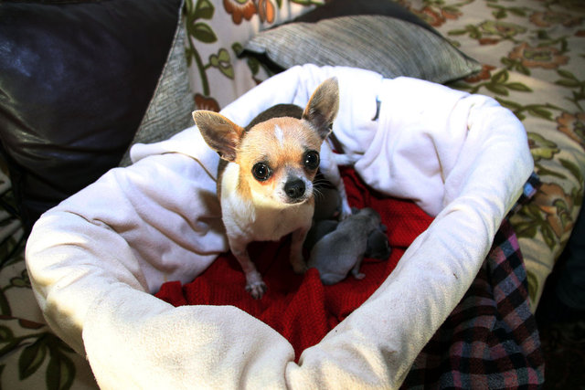 Sivas'ta, doğum kanalına göre büyük oldukları için anne karnından sezaryenle alınan Chihuahua cinsi 3 köpek yavrusu özenle besleniyor