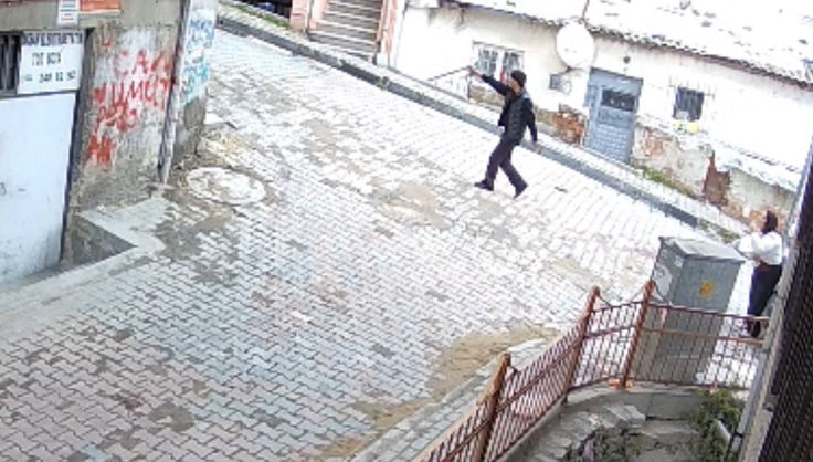 Kadının ağlayarak çığlık attığı olayda Bilal E., elindeki silahı kadının başına dayadı. Müdahale etmek isteyen çevredekileri de silahla tehdit eden Bilal E. ardından sokaktan kaçtı. Olay anı güvenlik kamerasına yansırken polisin yakaladığı Bilal E. tutuklandı.