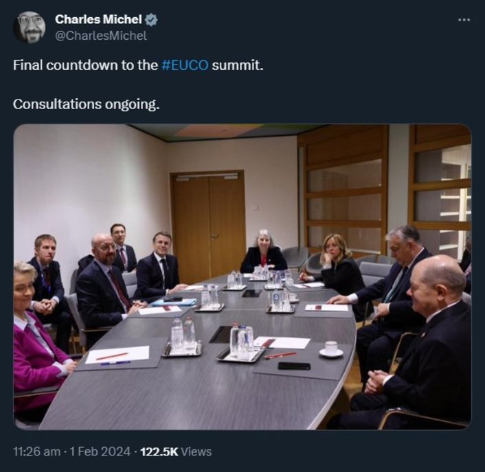 AB Komisyonu, Ukrayna'ya gelecek 4 yılda kesintisiz destek sağlayabilmek için, 2024-27 bütçesine 50 milyar euroluk fonun dahil edilmesini istiyordu. 26 üye buna destek verirken, Macaristan çeşitli gerekçelerle karşı çıkıyordu.