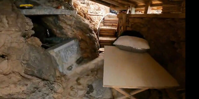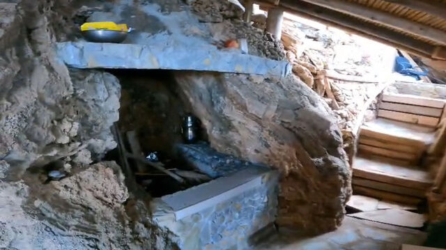 Demir kapıdaki delikten görüntü alan Fırat, içeride kano, sandalyeler, duş ve av malzemeleri bulunan bir oda ve karayla bağlantılı olduğu düşünülen merdivenleri görüntüledi.