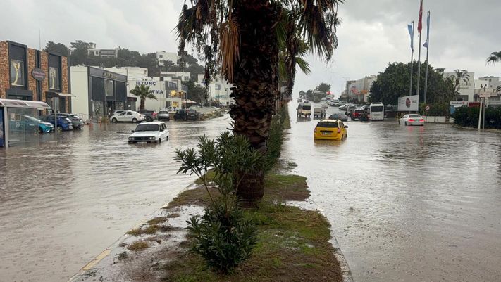 Muğla'nın Bodrum ilçesinde, kuvvetli sağanak yaşamı olumsuz etkiledi. Cadde ve sokaklar göle döndü, araçlar yolda mahsur kaldı. Sürücüler zor anlar yaşadı.