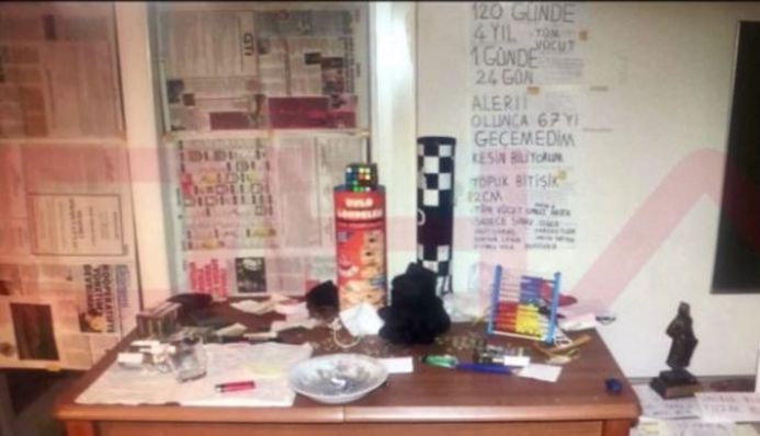 Evin oturma odasında duvarlara yapıştırılan A4 kağıtlarındaki yazılar ile masanın üzerindeki satranç, abaküs ve rubik küp gibi çok sayıda oyun aleti dikkat çekti.