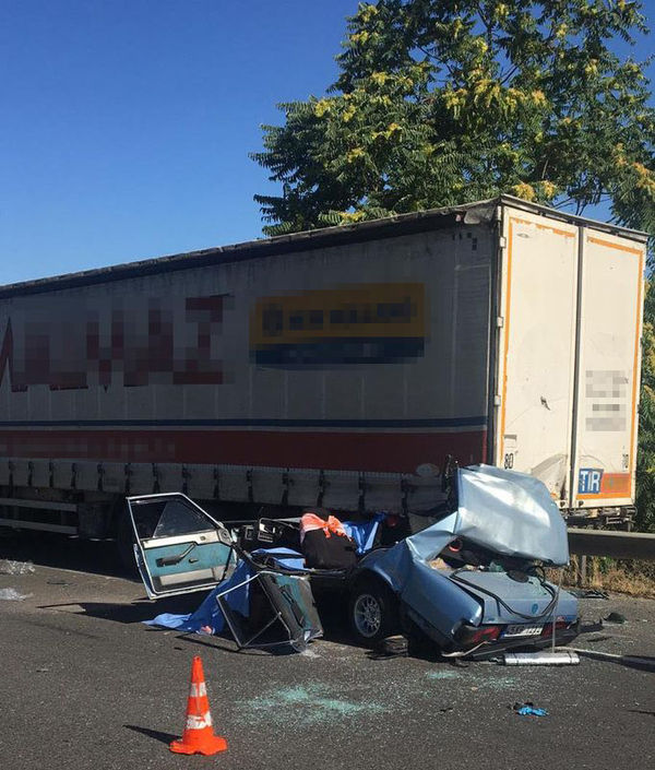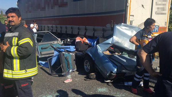 Manisa'nın Turgutlu ilçesinde, arıza yaptığı için emniyet şeridinde duran TIR'a arkadan çarpan otomobildeki Cumali (35) ve Hicran Yarıcı (30) çifti ile bebekleri öldü. İki kız kardeş ağır yaralandı.