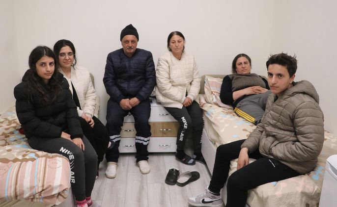 Bir süre araçta beklediklerini aktaran Gönül, "Gün ışığı ortaya çıkınca inip, binanın arka tarafına gittim. Enkazdan, kıyafetlerden alabildiklerimi aldım. Yarım saat sonra tekrar enkaza döndük, tavan çökmüş, benim terzi masası tutuyordu. O riski göze alıp, çekmecedeki yedek anahtarı aldık. Arabayı çalıştırıp, baldızın yanına gittik. Caddede her yer yıkılmıştı. Sonra kızımın öğretmenleri aracılığıyla buraya geldik. 'Sıfırdan hayat kuracağız' diye buraya geldik. Milli Eğitim Müdürlüğü bizi hastaneye götürdü. Belimden MR çekildi, enkazda kırılmış. Doktor da 'Sen Maraş'tan buraya kadar böyle nasıl geldin' diyerek şaşırdı. Burada bütün ihtiyaçlarımızı karşıladılar" diye konuştu.