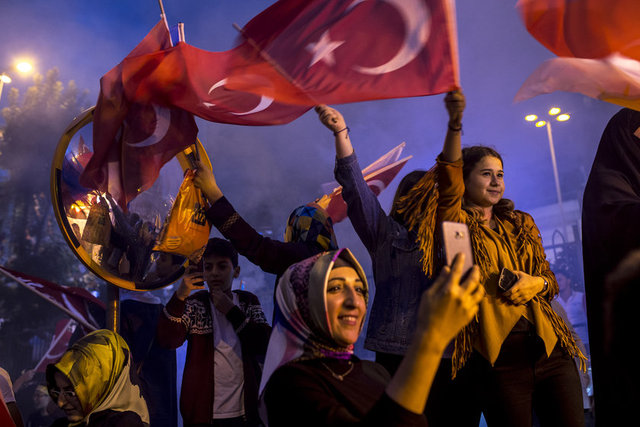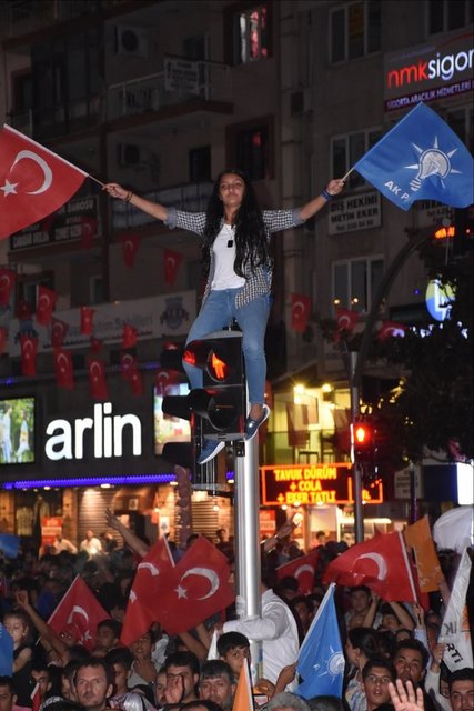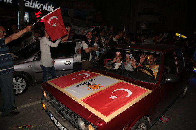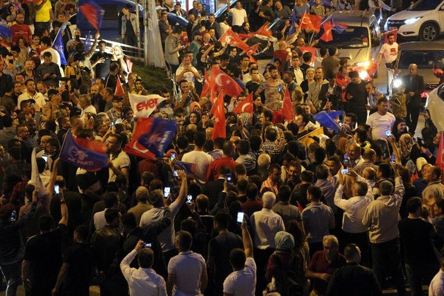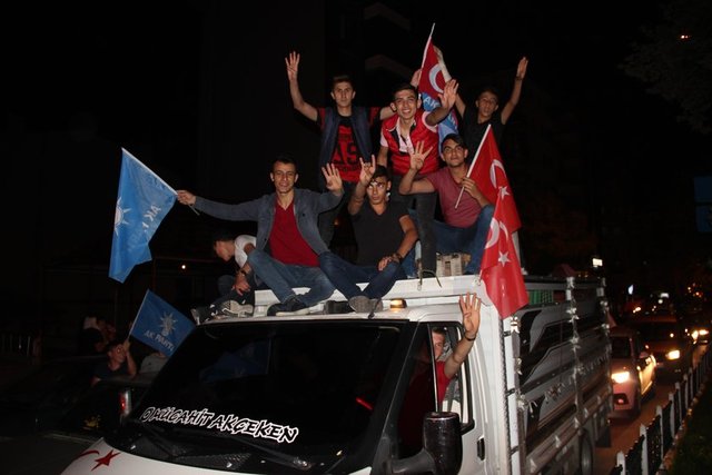 AK Partili seçmenler, birçok ilde sokaklara çıkarak, Cumhurbaşkanı Erdoğan lehine sloganlar atıp, tezahürat yapıyor.