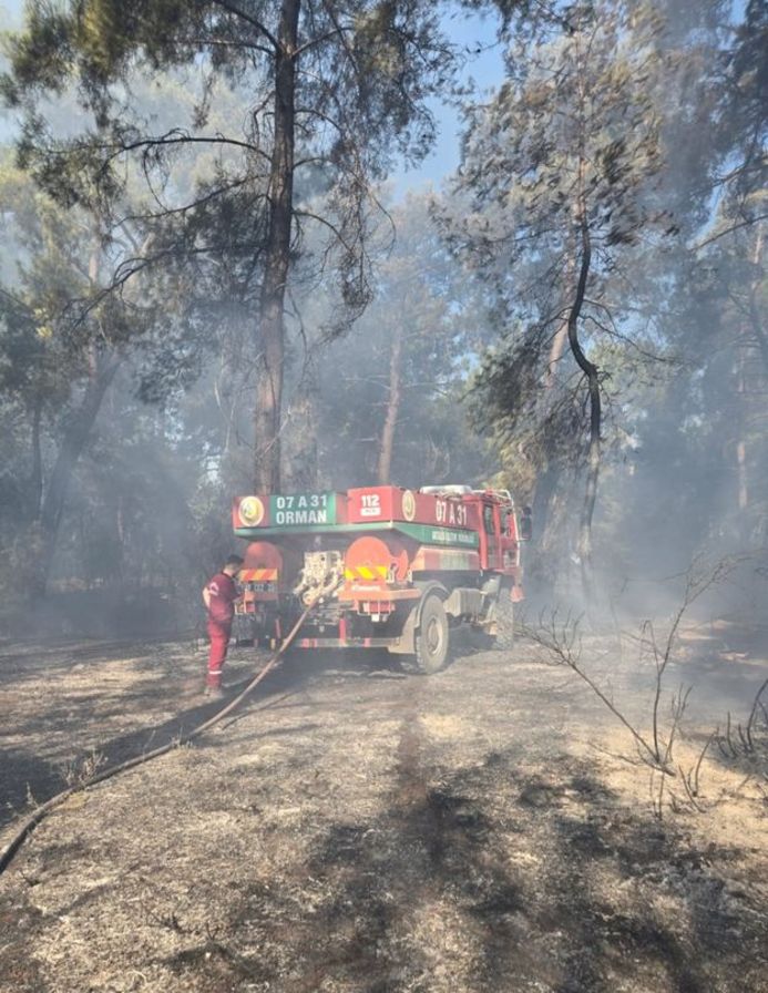 Aksu ilçesindeki orman yangınında alevler yakındaki bir tarlaya sıçradı, buradaki zeytin, incir ve nar ağaçları yandı. Ormanlık alanda devam eden yangın, sera ve evlere sıçramadan ekiplerin müdahalesi ile kontrol altına alındı.
