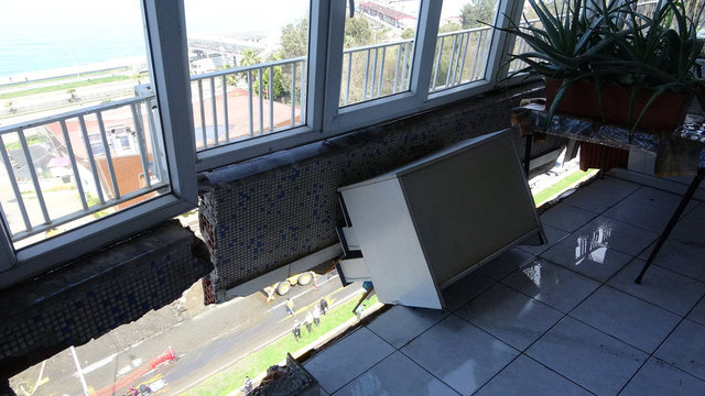 Apartmanın çatı katının balkonunun basınçlı su nedeniyle yıkıldığını anlatan Kolcu, "Betonu kırdılar, aşağı düşürdüler. Şimdi de balkon demirine kaynak yapıyorlar. Düşseydi facia olurdu; Allah korudu. Korkuluklar ve beton, mobilyalara takıldı. Ondan dolayı aşağı düşmedi. Eğer düşseydi; biz de buralardaydık, üzerimize düşerdi. Neyse ki bir şey olmadı" diye konuştu.