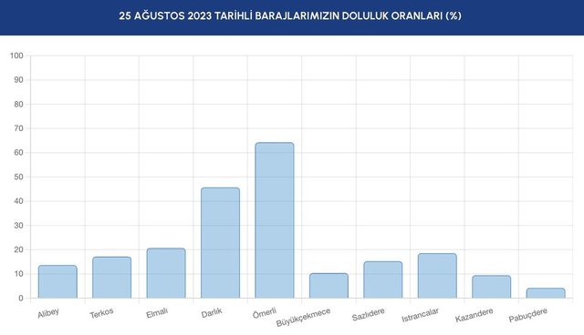 İstanbul'da yaşanan kuraklık baraj doluluk oranlarını da vurdu. 25 Ağustos tarihi itibariyle İstanbul'a su sağlayan barajların doluluk oranı yüzde 30 seviyesine kadar geriledi. Önümüzdeki günlerde de İstanbul'da yağış beklenmezken, bu oranın yüzde 30'un da altına düşmesi kaçınılmaz. İstanbullulara su tasarrufu çağrısı yapıldı...
