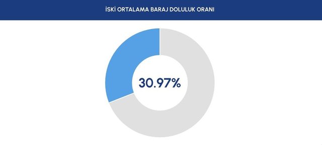 İstanbul Su ve Kanalizasyon İdaresi (İSKİ) verilerine göre, kente su sağlayan barajların doluluk oranı bugün itibarıyla yüzde 30.97'ye geriledi.