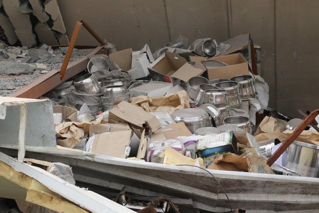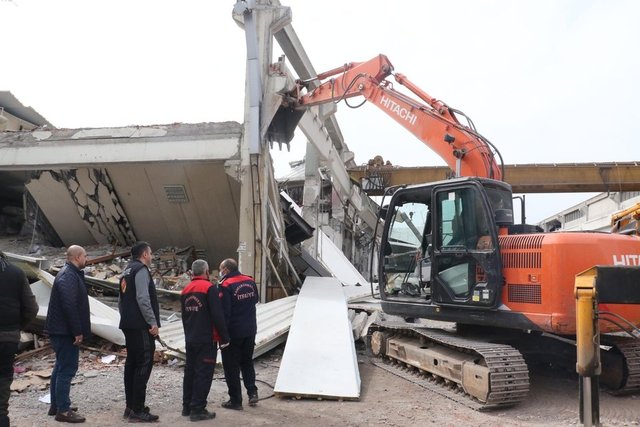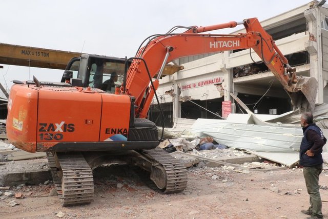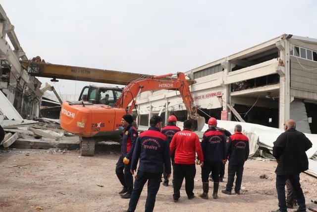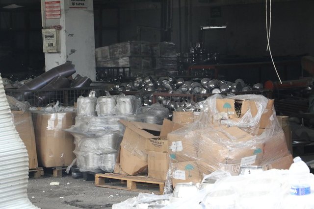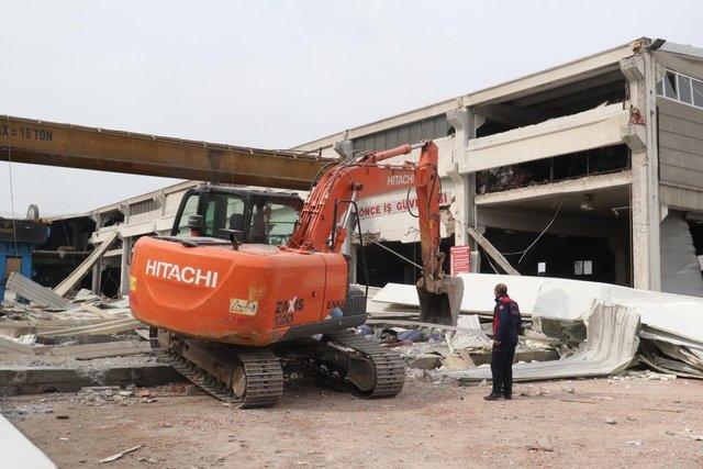 Öte yandan ağır hasar alan fabrikanın duvarlarında ve girişteki danışma ofisinin kapısındaki iş güvenliğine ilişkin uyarılar dikkat çekti.
