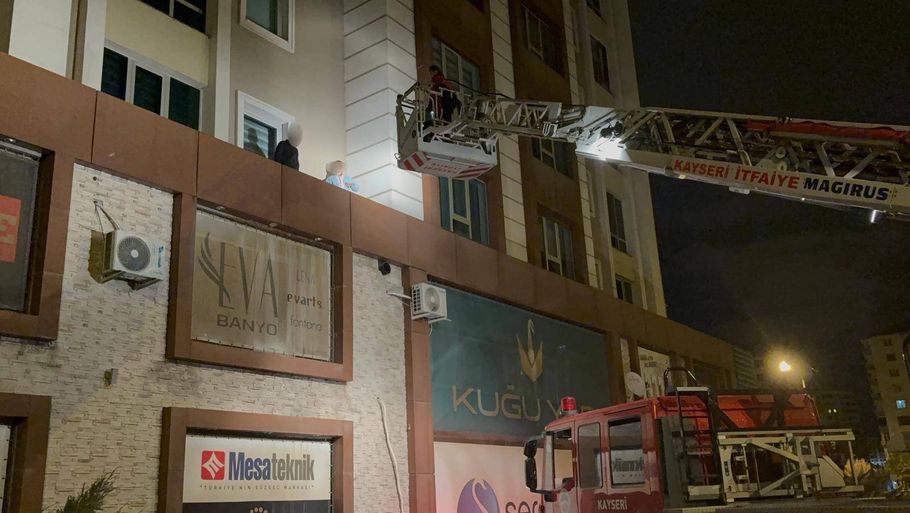 S.A. ve E.Ö. 3'üncü katta bulunan evden çarşafları birbirine bağlayarak, binanın altında bulunan marketin çıkıntısına indi. 2 şahıs burada mahsur kalırken, ihbar üzerine bölgeye polis, sağlık ve itfaiye ekipleri sevk edildi.