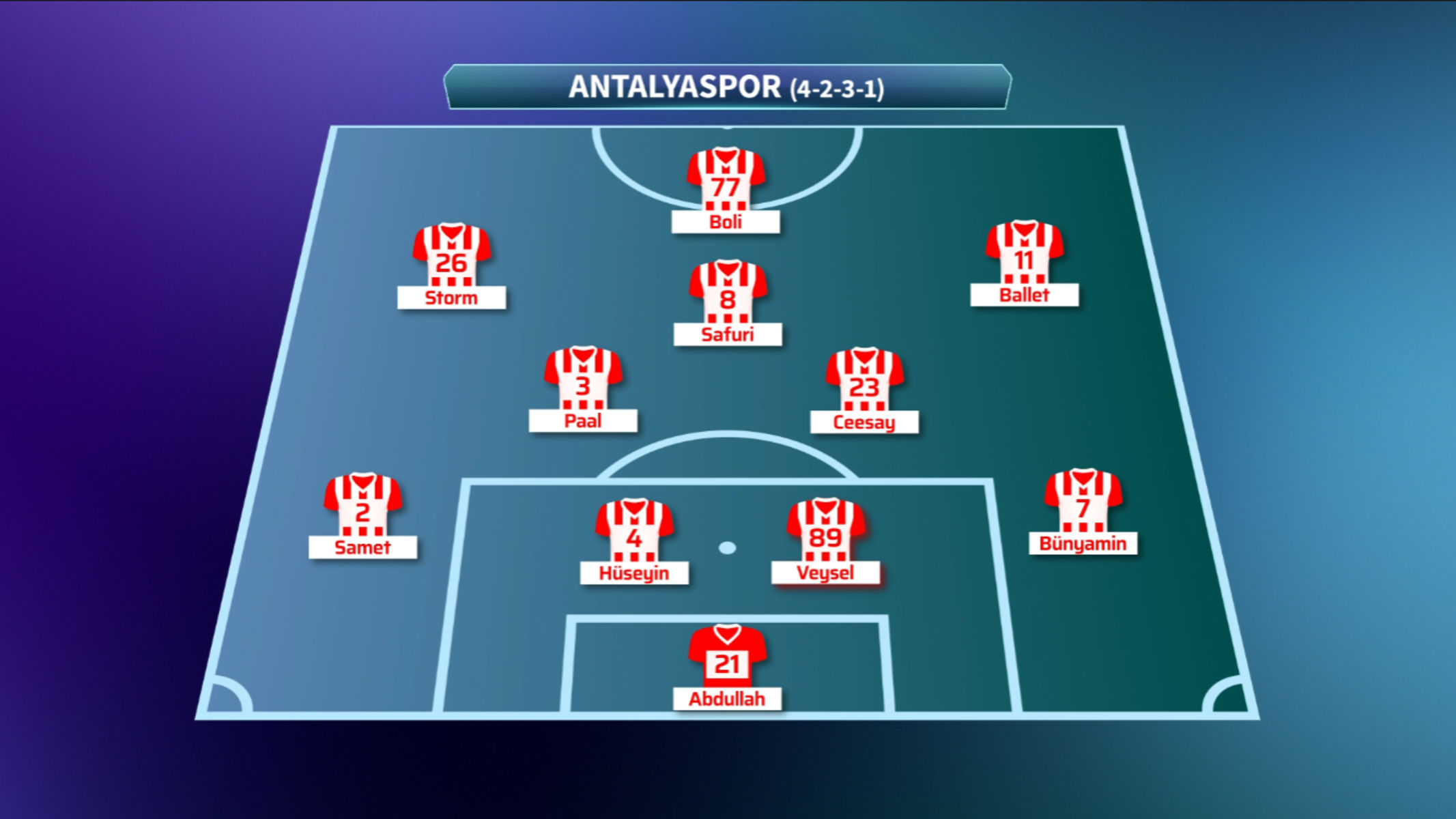 ANTALYASPOR: Abdullah, Bünyamin, Veysel, Hüseyin, Samet, Ceesay, Paal, Safuri, Ballet, Storm, Boli