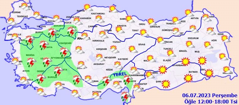 Meteoroloji Genel Müdürlüğü tarafından yapılan son değerlendirmelere göre: Ülkemizin iç ve batı kesimlerinin parçalı ve çok bulutlu, İç Ege, Batı Akdeniz’in iç kesimleri, Edirne, Balıkesir, Bursa, Bilecik, Kocaeli, Sakarya, Osmaniye, Eskişehir ve Bolu çevreleri, Hatay’ın kıyı kesimleri ile Doğu Akdeniz’in Toroslar kesiminin yerel olmak üzere sağanak ve gök gürültülü sağanak yağışlı, diğer yerlerin az bulutlu ve açık geçeceği tahmin ediliyor.