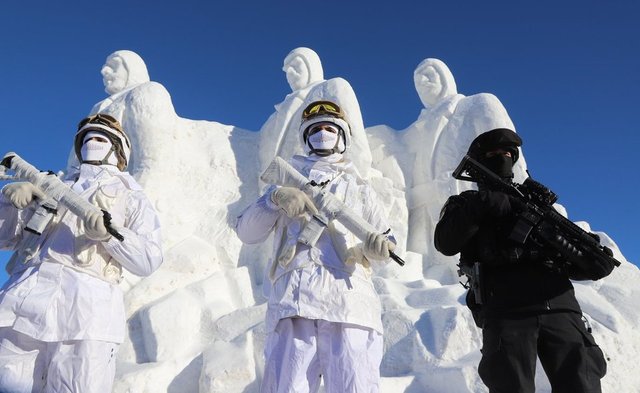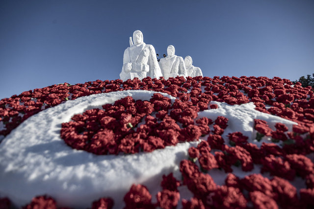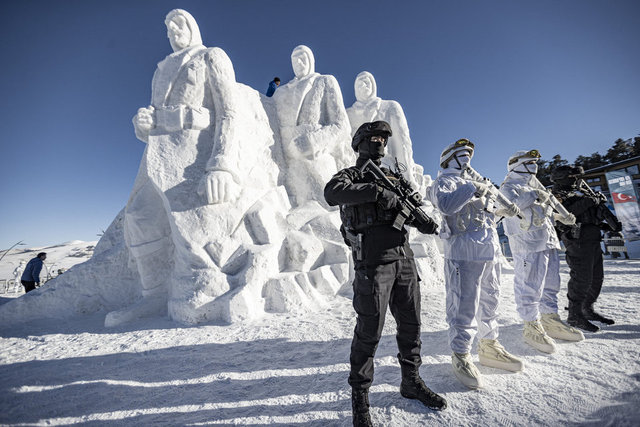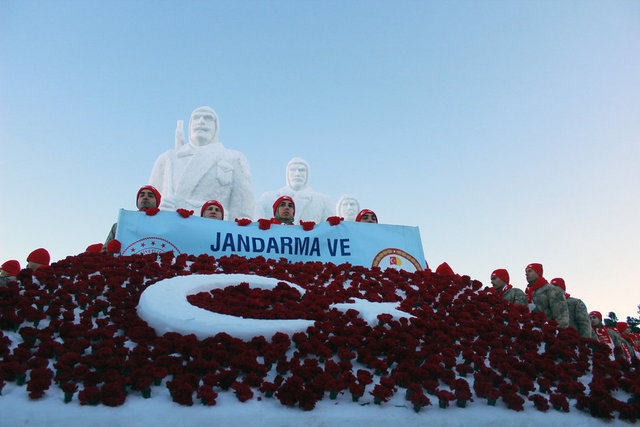 Sarıkamış Harekatı'nın 109. yılı anma etkinlikleri için, Sarıkamış şehitleri için kardan heykeller yapıldı.