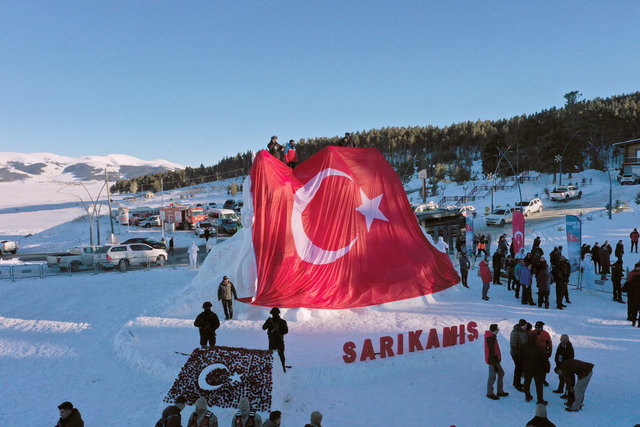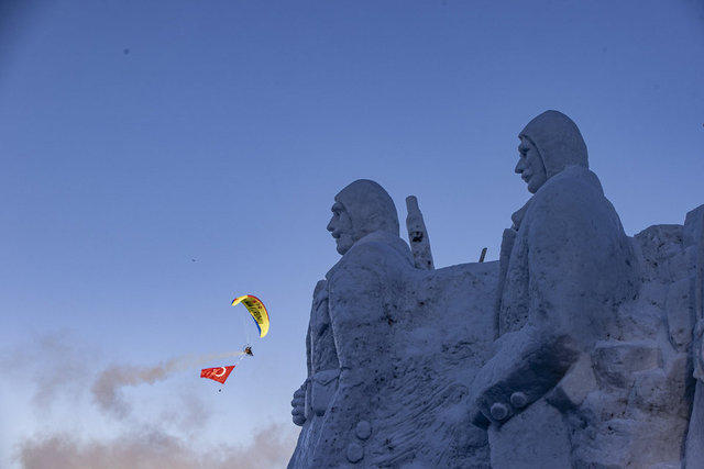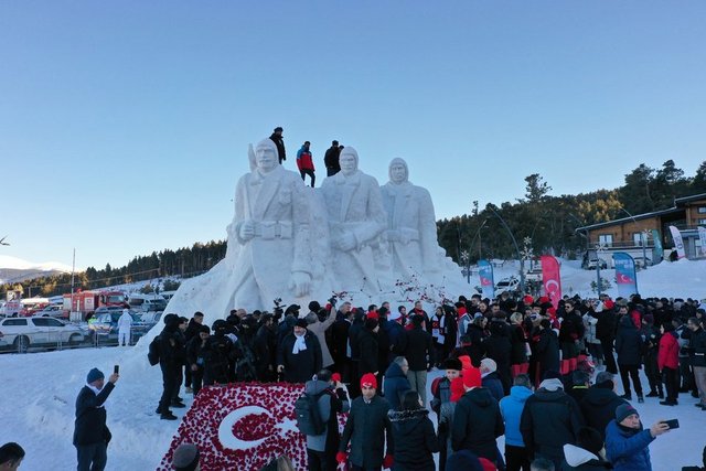 Kars'ın Sarıkamış ilçesinde Sarıkamış Harekatı'nın 109. yılı anma etkinlikleri kapsamında yapılan kardan şehit heykelleri, ziyaretçilerine duygusal anlar yaşatıyor.