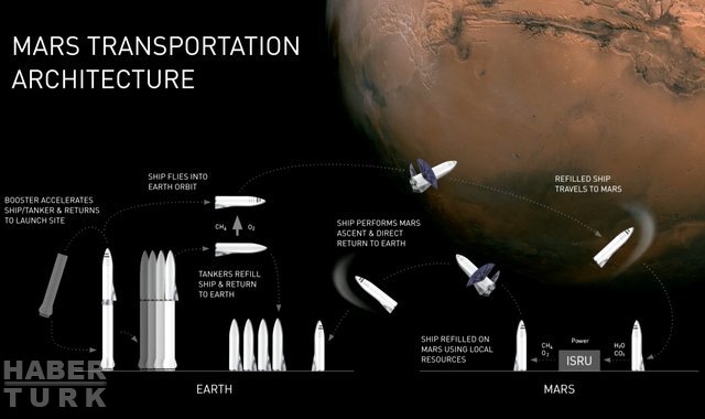 Musk, ilk geminin Dünya'dan kalkıştan üç ile altı ay arasında Mars'a ulaşmasından sonra, metan ve insanların yaşayabileceği oksijen deposu kurulacağını söyledi.