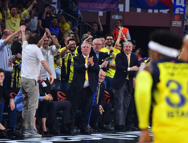 İlk çeyrekte hakemlerin Kalinic'in Spanoulis'e yaptığı hareket faul çalması sonrası Aziz Yıldırım sinirlendi. Elini havaya kaldıran Yıldırım 'Nasıl hakemsin sen' diye bağırdı.