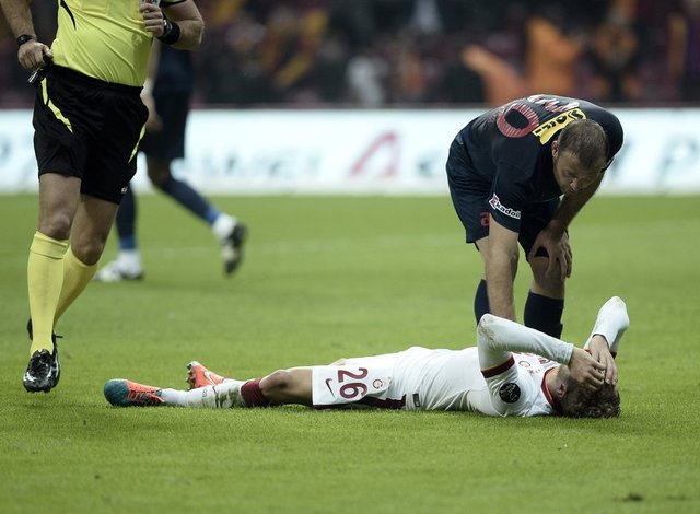 Karşılaşmanın ilk yarısında suratına top çarpan Galatasaraylı futbolcu Semih Kaya, hastaneye kaldırıldı. Maçın 33. dakikasında yüzüne gelen sert top sonrası yerde kalan sarı-kırmızılı futbolcuya, sağlık ekibi önce saha içinde müdahalede bulundu. Ancak yürümekte zorlanan ve kötü görünen Semih Kaya, sedyeyle saha kenarına getirildi. Teknik direktör Hamza Hamzaoğlu'nun soyunma odası tüneline kadar giderek durumunu öğrenmek istediği Semih, tedbir amacıyla ambulansla hastaneye götürüldü. Semih Kaya'nın yerine maçın 35. dakikasında Hakan Balta oyuna dahil oldu.
