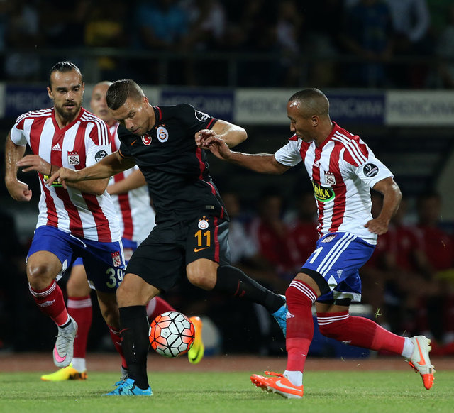 81. dakikada Galatasaray, beraberlik golünü buldu. Telles'in sol kanattan ceza alanına ortasında Podolski'nin şık kafa vuruşunda, meşin yuvarlak ağlara gitti: 2-2.