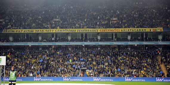 Fenerbahçeli taraftarlar, açtıkları pankartlarla Galatasaray'a göndermelerde bulundu. Sarı-lacivertli taraftarların, özellikle Maraton Tribünü'nde açtıkları "Hakim: Yaz kızım 2010-2011 şampiyonu Fenerbahçe, sekizincisi 6alatasaray...Nokta" yazılı pankart dikkati çekti. Bu pankartın altında ise taraftarlar ellerindeki kartonları kaldırarak "Game Over (Oyun Bitti)" koreografisini oluşturdu.