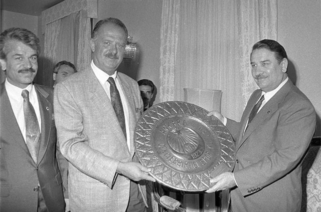 10 Temmuz 1990'da dönemin Başbakanı Yıldırım Akbulut'u ziyaret ediyor.