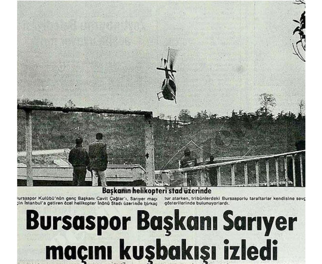 İnönü Stadı Mart 1986 | Bursaspor Başkanı Cavit Çağlar, Sarıyer maçını helikopterden izledi.