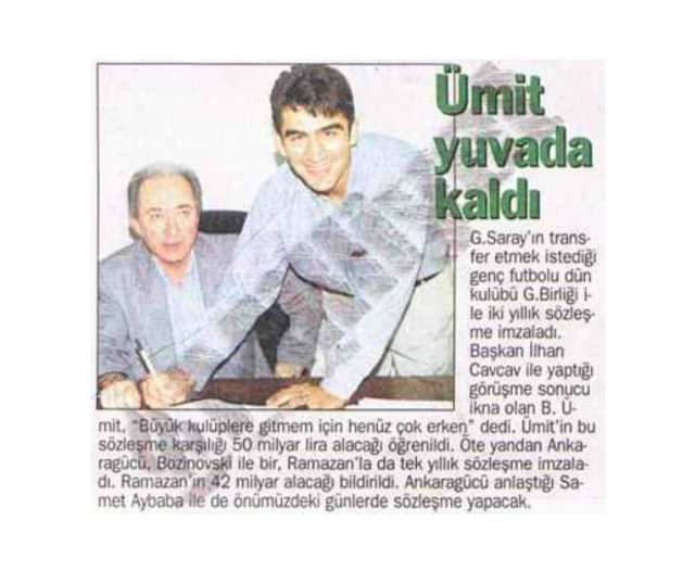 ''Galatasaray'ın transfer etmek istediği Ümit Özat, Gençlerbirliği ile sözleşme yeniledi. '' ( 1997)