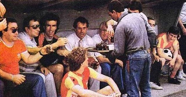 Adana Şehir Stadı Mayıs 1988 | Maç esnasında Galatasaray yedek kulübesine yapılan çay servisi. (Adana Demirspor - GS)