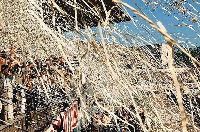 İnönü Stadı Haziran 1982 | Beşiktaş sahaya çıktığında Kapalı tribünden atılan konfetiler. (Beşiktaş - Trabzonspor)