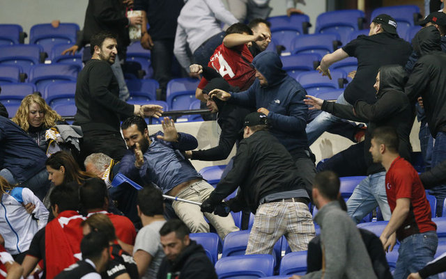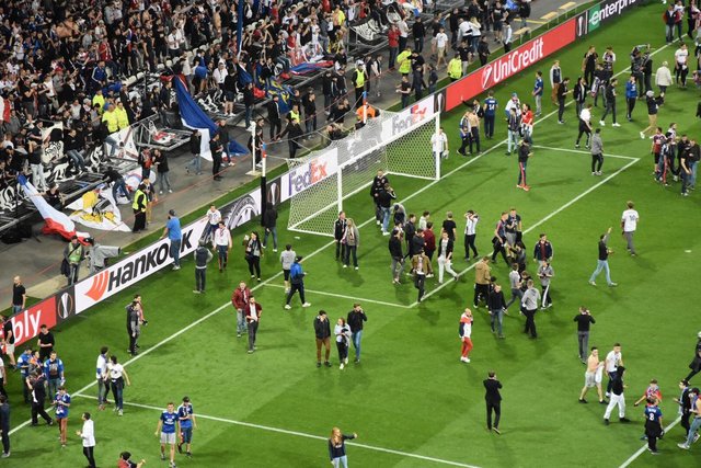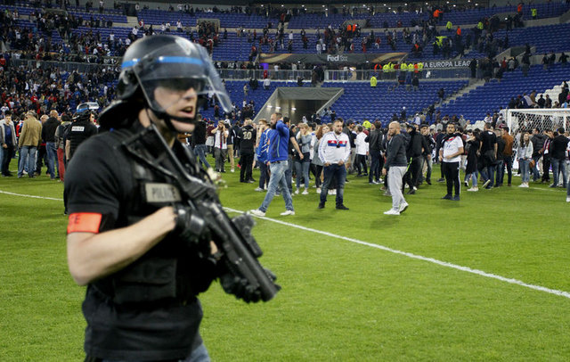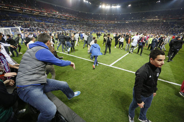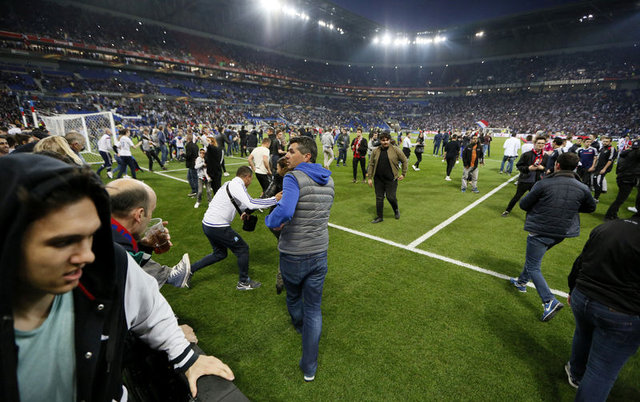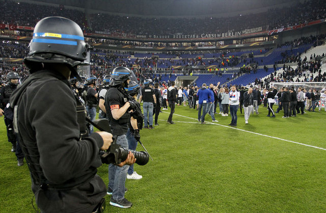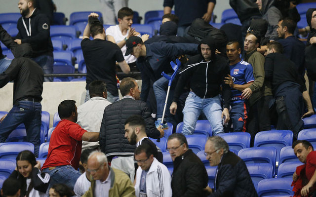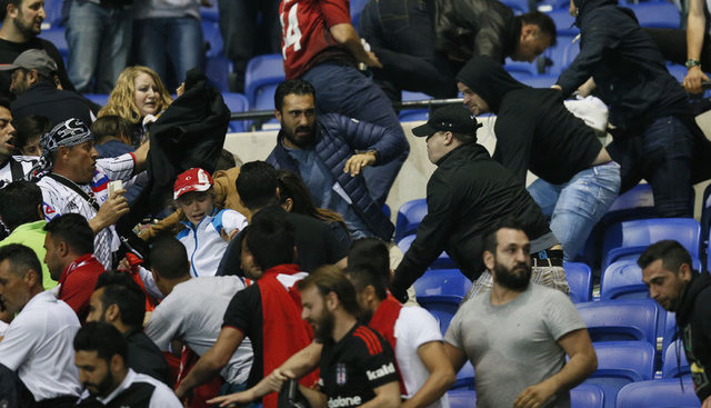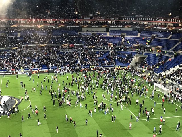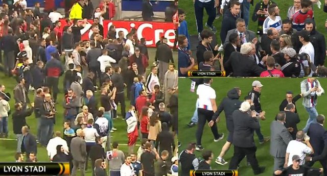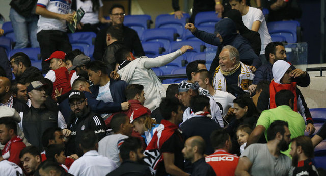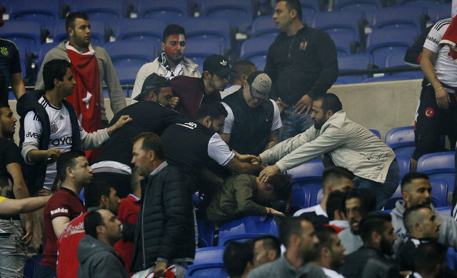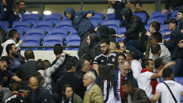 Lyon - Beşiktaş maçı öncesi kavga! Taraftarlar sahaya girdi...