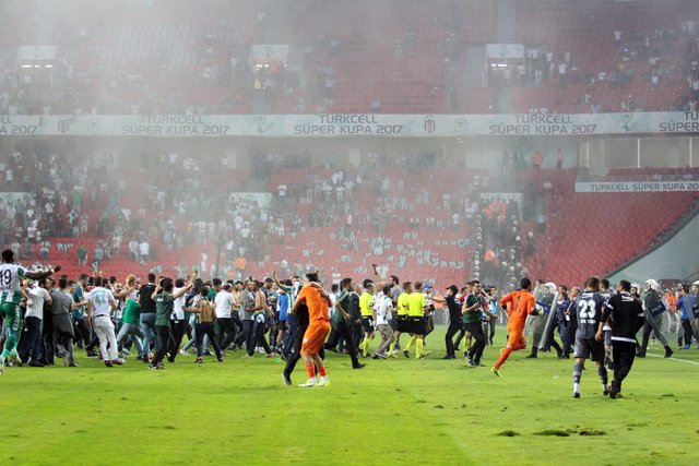 Ancak pankartlara göz açtırmayan görevliler, bıçak ve ses bombalarının stada sokulmasında aynı hassasiyeti gösteremedi.