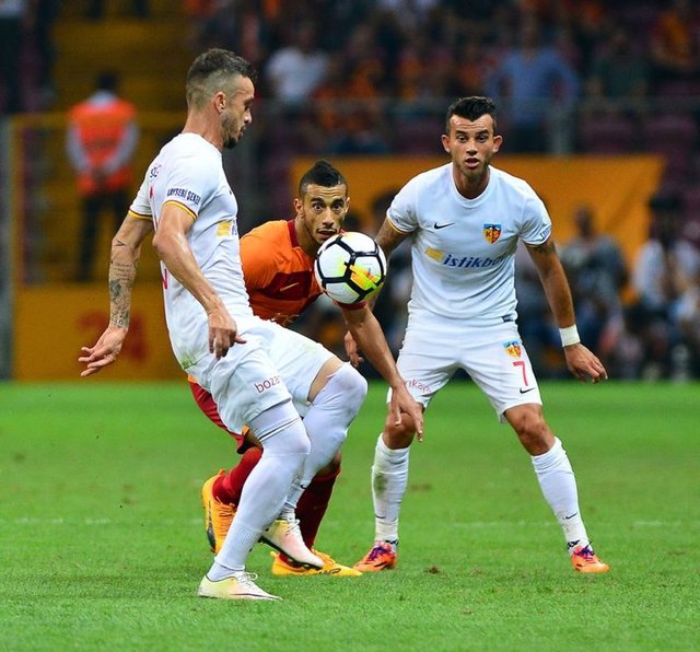 Yenilenmiş, heyecan ve merak uyandırmış Galatasaray maçı için ekran başına geçtim. Bir de baktım ki daha dün gelmiş bir sürü yabancı isim sanki 40 yıllık Aslanlar gibi koşuyor, mücadele ediyor, istiyorlar. Şu ana kadar seyrettiğim en iştahlı ekip sahadaydı ama Kayseri de sinmeyip önde basan bir oyun tercih edince zaaf ortaya çıktı: Oyunu kim kuracaktı? Bir Maicon bir Muslera topu ileri şişirip durdular. Pozisyon oluşamadığı şöyle dursun rakip alana dahi yerleşilemedi. Biraz top yapılabilsin diye solda başlayan Belhanda ortaya, hayatında solda oynamamış, tekniği sıfır Tolga Ciğerci sol öne geçti.