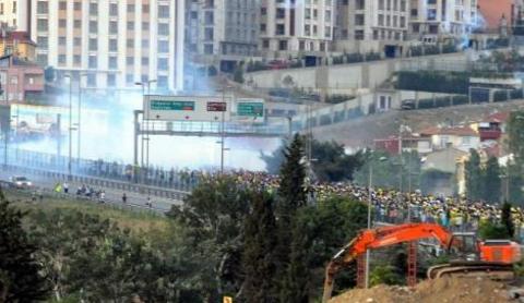 Tutuklanan Fenerbahçe Kulübü Başkanı Aziz Yıldırım ve yönetim kurulu üyeleri Şekip Mosturoğlu ile İlhan Ekşioğlu'na destek için düzenledikleri yürüyüşün ardından Boğaziçi Köprüsü'ne doğru hareket eden sarı-lacivertli taraftarlara, polis biber gazı ile müdahale etti.