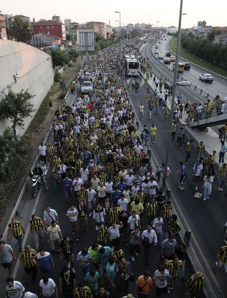 Futbolda yürütülen şike iddialarına yönelik soruşturmada, tutuklanan yöneticilerine destek vermek için Bağdat Caddesi'nde yürüyüş yapan Fenerbahçeli taraftarların bir bölümü, Boğaziçi Köprüsü'ne doğru yürüyüşe geçti.